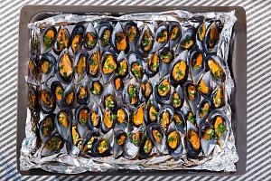 Мидии запеченные в духовке с сыром и чесноком! Рецепт с фото.
