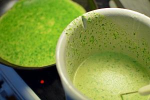 Приготовление шпинатного теста. Смешайте шпинат, муку, 3 желтка, щепотку соли и веточку укропа с петрушкой. С помощью погружного блендера превратите все компоненты в однородную смесь. Белки взбейте до пиков и частями вмешайте в уже готовое шпинатное тесто. Перемешивать нужно не круговыми движениями, а сверху виз – тесто насыщается кислородом.