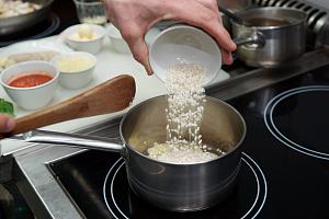 Начать приготовление роллов необходимо с подготовки риса. Тщательно промойте рис в кастрюле с холодной водой и слейте воду. Повторяйте до тех пор, пока вода не станет максимально прозрачной. После того, как промоете рис финальный раз, можете ставить кастрюлю с ним на плиту. Соотношение риса и воды должно быть 4 к 5. Варить рис необходимо на максимальном огне до тех пор, пока вода не закипит. После этого убавляете "огонь" на минимум, закрываете кастрюлю крышкой и варите так ещё 12 минут.