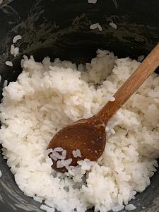 Пока рис доваривается, можно подготовить для него специальную приправу. В небольшую кастрюлю или металлический ковшик налейте рисовый уксус (в соотношении 3 столовые ложки на 1 стакан риса). Добавьте немного сахара и соли по вкусу. Поставьте получившийся соус на горячую плиту. Время от времени помешивая, грейте до тех пор, пока сахар полностью не растворится. К этому времени рис как раз закончит вариться. Переложите его в другую сухую посуду и постепенно вылейте приготовленный соус, при этом осторожна перемешивая рис. Оставьте рис до тех пор, пока он не остынет примерно до комнатной температуры.