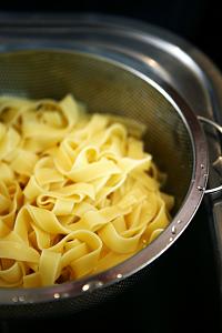 Теперь, когда вода уже начала вскипать, выкладываем в кастрюлю пасту и варим до состояния "альденте". Варить пасту до полной готовности не нужно, так как в дальнейшем она ещё будет готовится на сковороде в сливочном соусе.