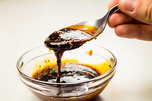 Для приготовления маринада смешайте в средней емкости растительное масло, соевый соус, горчицу (лучше выбирать зернистую) и чеснок. Перемешайте все компоненты в однородную массу. В приготовлении важно не использовать уксус или лимонную кислоту. Их добавление разрушит волокла рыбы и потом она просто не нанижется на шпажки, потеряет форму и приобретет специфический цвет. Попробуйте маринад на вкус, возможно пожелаете добавить что-то для остроты или кислоты