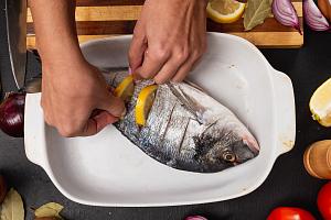 Дорадо, запеченная с овощами в духовке. Пошаговый рецепт приготовления.