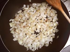Лук нужно нарезать в произвольной форме – полукольцами, мелкими или крупными кубиками. Это не повлияет на вкус и зависит от личных предпочтений. Нарезанный лук отправляет на сковороду с разогретым маслом, и поджариваем до золотистого цвета.