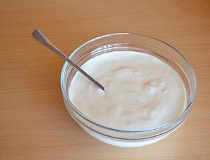 Пока лук жарится, нужно приготовить сметанный соус. Для этого смешиваем сметану с сушеным или натертым свежим чесноком, добавляем туда соль, черный перец, сушеный укроп. Можно добавить любимые специи по вкусу.
