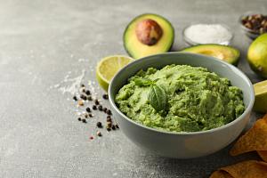 Пока мясо остывает, самое время приготовить намазку на батон – гуакамоле. Лучше всего избавиться от косточки авокадо – это разрезать плод пополам, поставить нож на косточку и покрутить его. Далее очистить авокадо от кожуры, достав мягкую часть ложкой. Чтобы превратить плод в густую массу, его можно пюрировать при помощи блендера или просто аккуратно растолочь (для этого авокадо должно быть комнатной температуры).