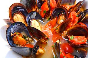 Самое время соединить все вместе. Большую часть мидий оставить в раковине, некоторую часть – очистить. Убрать веточки тимьяна, добавить свежую кинзу, специи и прованские травы. Если соуса недостаточно, то добавьте еще несколько ложек макаронной воды.