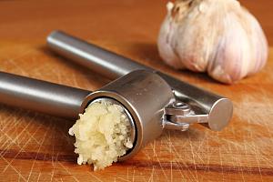 Очистите чеснок, нарежьте его на мелкие пластины, натрите или раздавите под прессом.