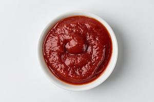 Приготовьте соус. Мелко нарежьте помидоры и тщательно перемешайте их с томатной пастой. В получившуюся массу выдавите одну головку чеснока. Добавьте щепотку сахара и ещё раз перемешайте соус.
