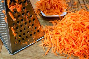 Морковь натереть на мелкой терке. Репчатый лук мелко порубить. Обжарить овощи буквально на 1 столовой ложке растительного масла.
