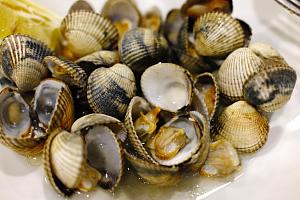 Когда со сковороды выпариться лишняя жидкость, выложить на нее вонголе, быстро обжарить, не допуская на них образования корочки, перемешать все и, убавив огонь, оставить тушиться на 3-4 минуты.