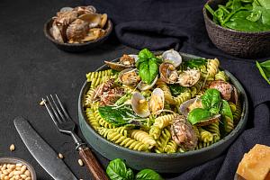Выложить на сковороду макаронные изделия, перемешать все и без промедления подать на стол. По желанию — пасту с вонголе и шпинатом можно дополнить мелко натертым твердым сыром наподобие пармезана.