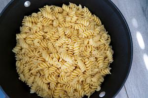 Отварить пасту до готовности согласно инструкции на упаковке макаронных изделий.