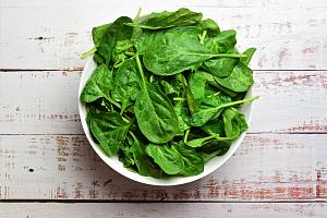 Шпинат промыть в холодной воде, обсушить немного (выложив в дуршлаг) и крупно порубить. Чеснок мелко порубить.