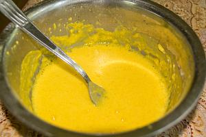 Для начала необходимо приготовить заправку по рецепту известного ресторатора Джеймса Оливера. Для этого необходимо смешать горчицу, оливковое масло, лимонный сок, бальзамический уксус, соль и перец в закрывающейся емкости, например, баночке. Закрыть сосуд и хорошенько взболтать полученную смесь 3-5 минут. Благодаря этому, текстура заправки получается насыщенной и однородной.