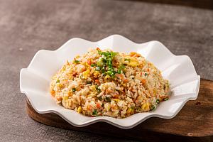 Солим, перчим по вкусу. Жарим в течение 7-10 минут. Совет: долго жарить морепродукты не советуется, поскольку они становятся жесткими. Пересыпаем к овощам с морепродуктами отварной рис. Размешиваем состав, так чтобы все продукты равномерно перемешались.