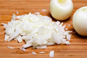 Лук мелко порубить. Распространено мнение о том, что для котлет его можно и прокрутить через мясорубку, но это неверно. Дело в том, что при данном способе измельчения из лука выделяется слишком много сока и фарш получается слишком мокрым. Вот почему лук следует только рубить.