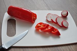 Подготовить перец чили – овощ необходимо тщательно помыть и порезать на кружочки толщиной в полсантиметра.