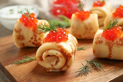 Пышные блины с красной икрой: рецепт приготовления на кефире