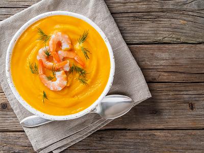 Нежнейший тыквенный крем-суп из овощей с креветками