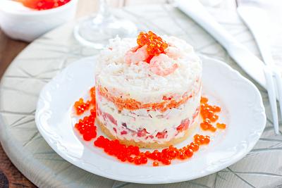 Слоеный салат из морепродуктов и красной икры – океан удовольствия!